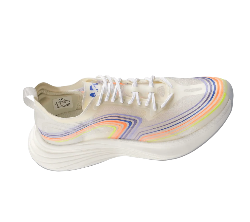 These vibrant rainbow-patterned APL sneakers masterfully blend style and comfort, ideal for transitioning from outdoor runs to indoor workouts. Note: They fit slightly snugger than other APL styles. As the sole brand crafting sneakers that effortlessly shine in the gym and on the streets, APL redefines versatile athletic fashion.